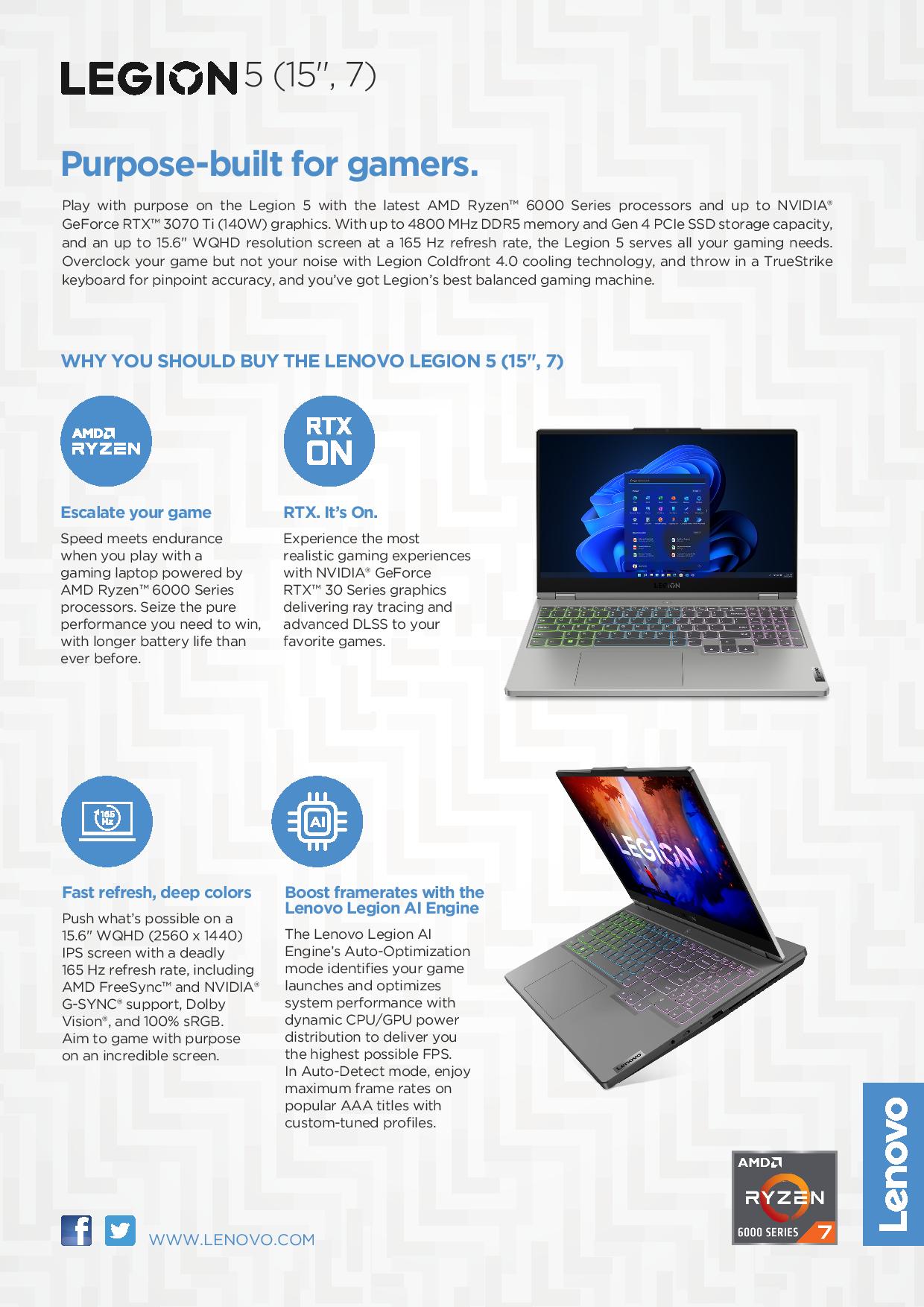 [RTX 3060]联想军团5 15ARH7H | 82RD0002SB | 15.6英寸WQHD(2560x1440)| AMD Ryzen 7 6800H | RTX 3060 | 16GB RAM | 1TB SSD | Win11主页| 3Y军团终极支持