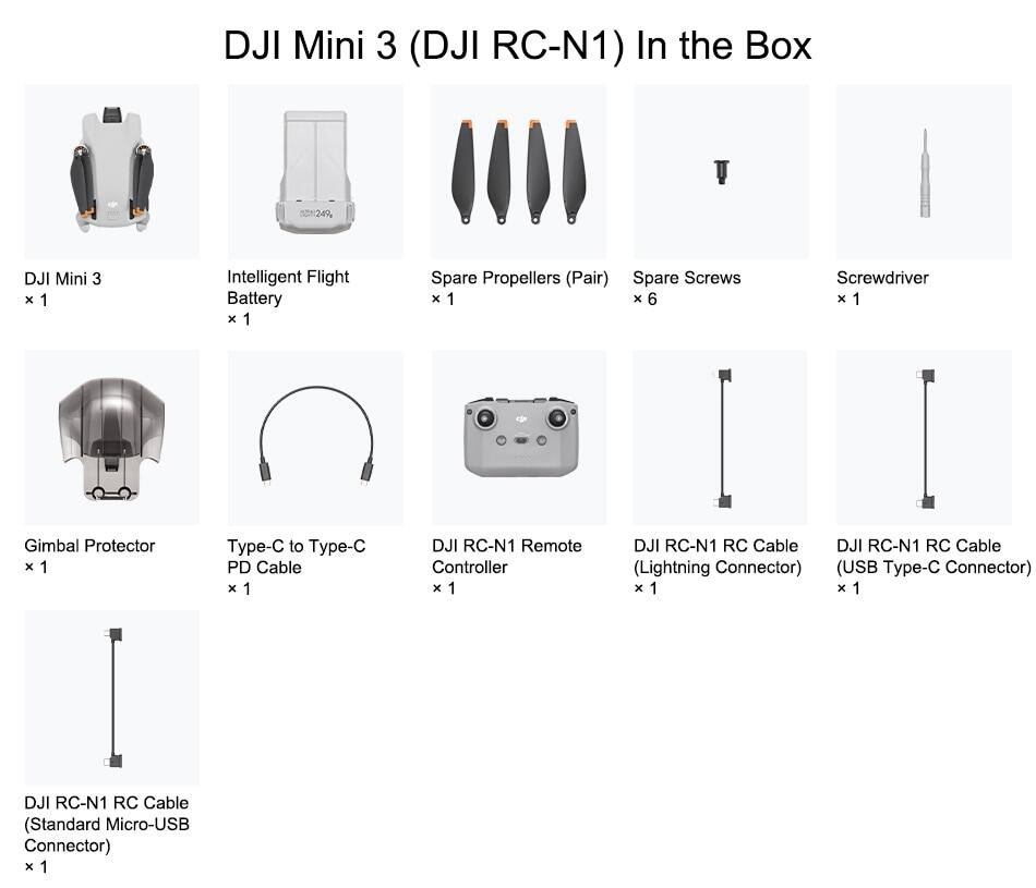 DJI Mini 3 is compatible with DJI RC-N1 Remote Controller and its related accessories, DJI RC, DJI 30W USB-C Charger, DJI 18W USB Charger, DJI Mini 3 Pro Intelligent Flight Battery, DJI Mini 3 Pro Intelligent Flight Battery Plus, DJI Mini 3 Pro Two-Way Charging Hub, DJI Mini 3 Pro Propeller Holder, DJI Mini 3 Pro ND Filters Set, and DJI Mini 3 Pro Shoulder Bag. The above accessories can be purchased at DJI Store.